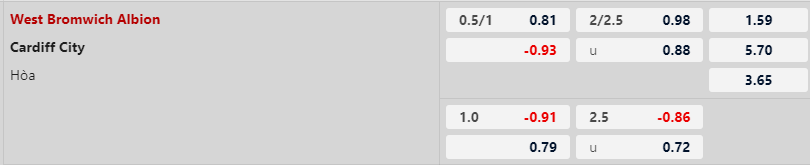 Thông tin tỷ lệ kèo West Brom vs Cardiff: