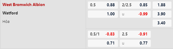 Thông tin tỷ lệ kèo West Brom vs Watford: