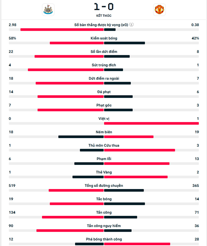 Newcastle đã tận dụng rất tốt phong độ thi đấu ấn tượng của mình để một lần nữa đánh bại quỷ đỏ với bàn thắng duy nhất của Gordon.